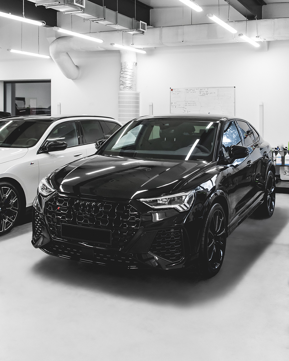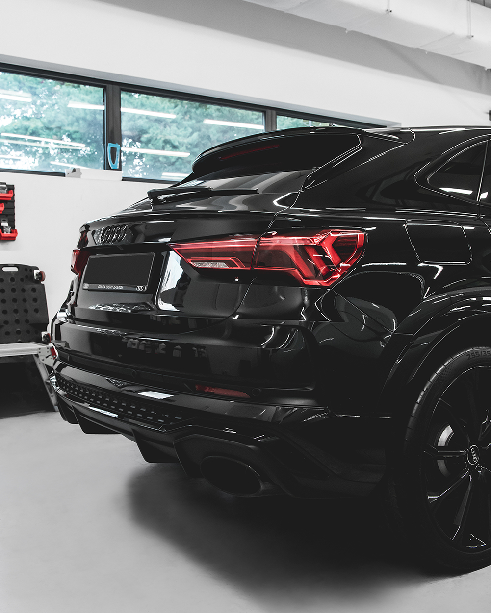 Szczegóły realizacji Audi RS Q3 Data realizacji: Wykonane usługi: Zabezpieczenie całego lakieru bezbarwną folią ochronną PPF.